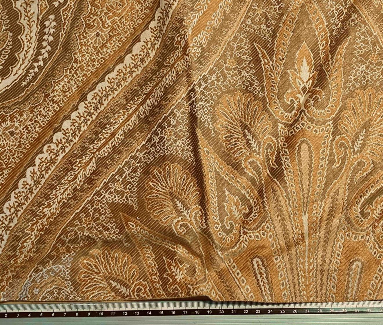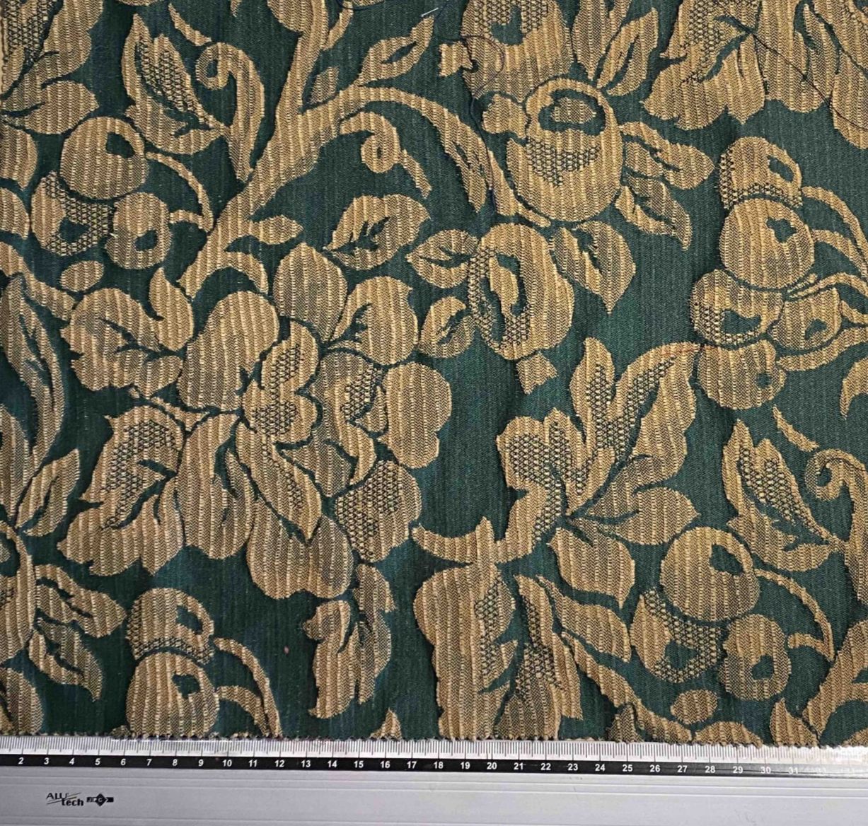 Jacquard baroques; fleurs & fruits ocres sur fond bleu canard.