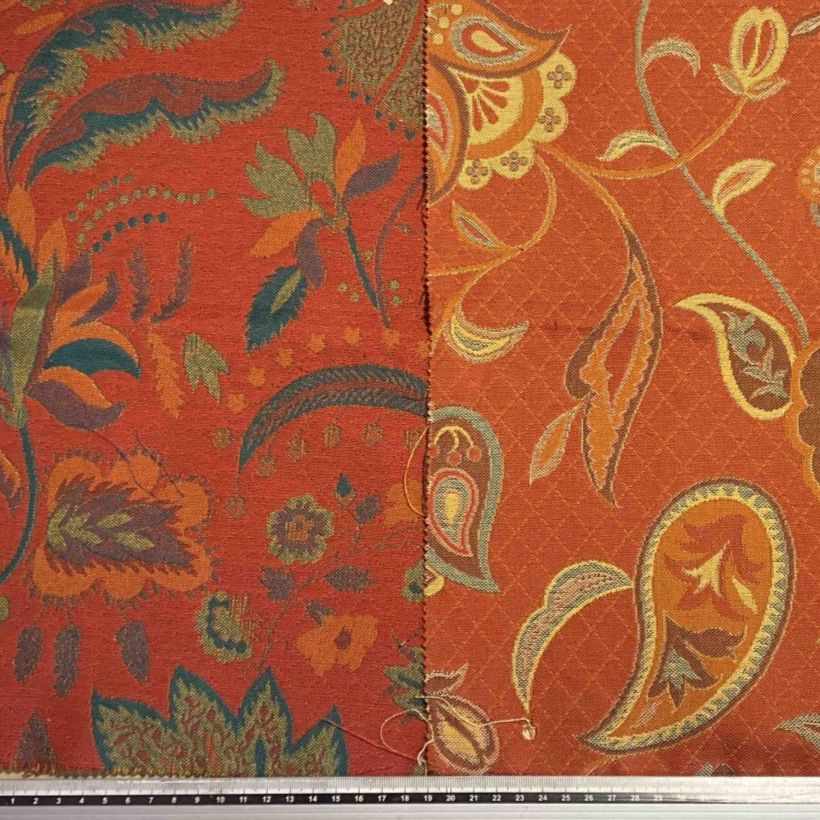 Jacquard fleurs médiévales sur fond couleurs brique.